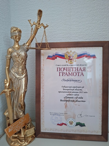 | Губкинский городской суд признан лучшим судом года Белгородской области по итогам работы в 2025 году. | версия для печати |